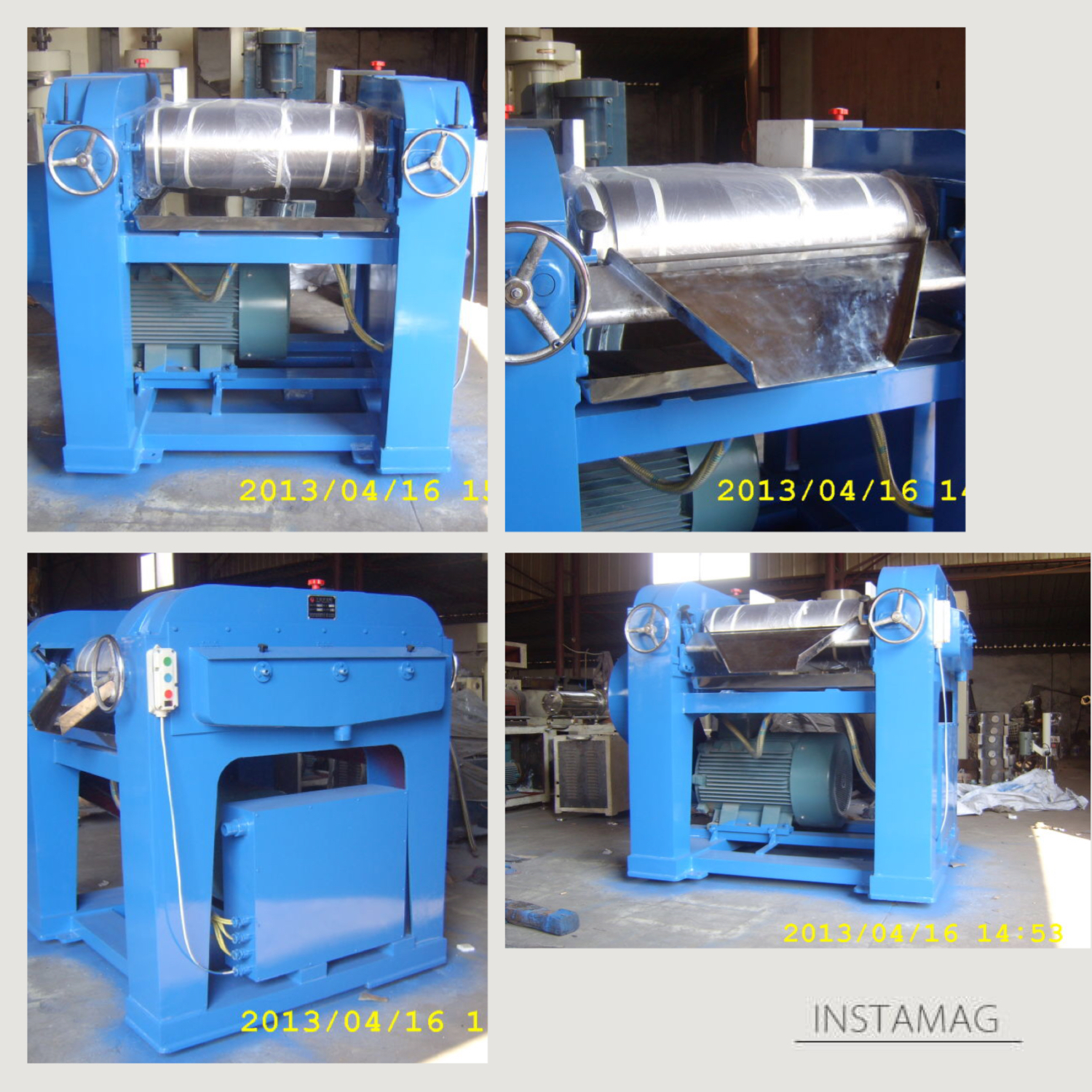 三輥研磨機(jī)適用于細(xì)度要求較高的膏體或高粘度物料使用。該機(jī)通過(guò)水平的三根輥筒的表面相互擠壓,手動(dòng)式調(diào)節(jié)輥筒之間的間距,以不同速度的摩擦達(dá)到研磨效果??裳b有緊急制動(dòng)按鈕,防止落入異物導(dǎo)致的設(shè)備損壞。輥?zhàn)邮褂锰厥庥操|(zhì)合金澆鑄而成;也可以使用大理石材質(zhì)。傳動(dòng)采用鏈條傳動(dòng)、齒輪調(diào)輥。